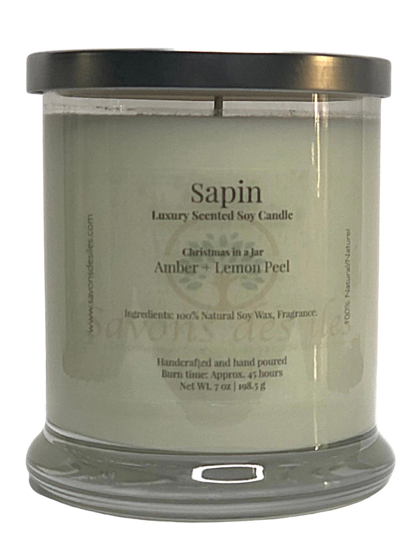 Séduisez vos sens avec l'arôme sophistiqué de Sapin. Ses notes comprennent l'ambre, le zeste de citron et le sapin! Nos bougies sont fabriquées à la main en petits lots nous permettant de contrôler chaque processus. L'arôme du jet froid et chaud - allumé ou non - vous fera revenir pour plus!e!